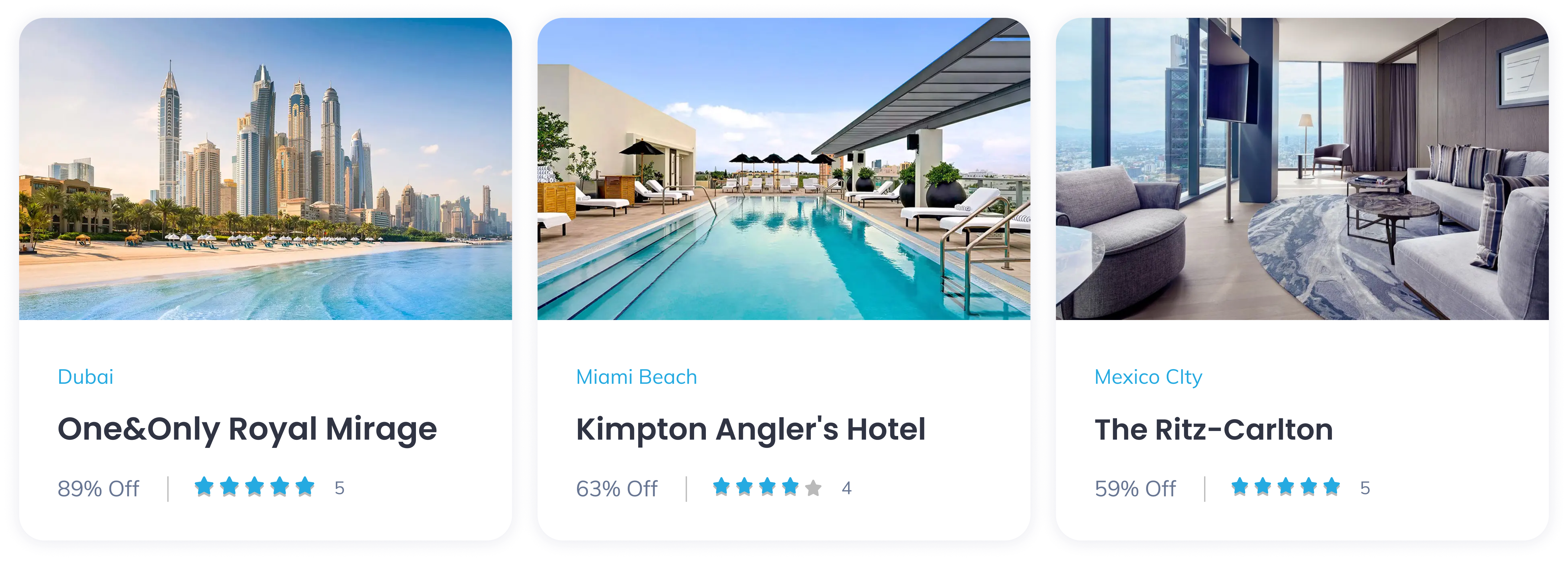 We have hotels / resorts / and cruises all around the world. Here are a few of our popular destinations.