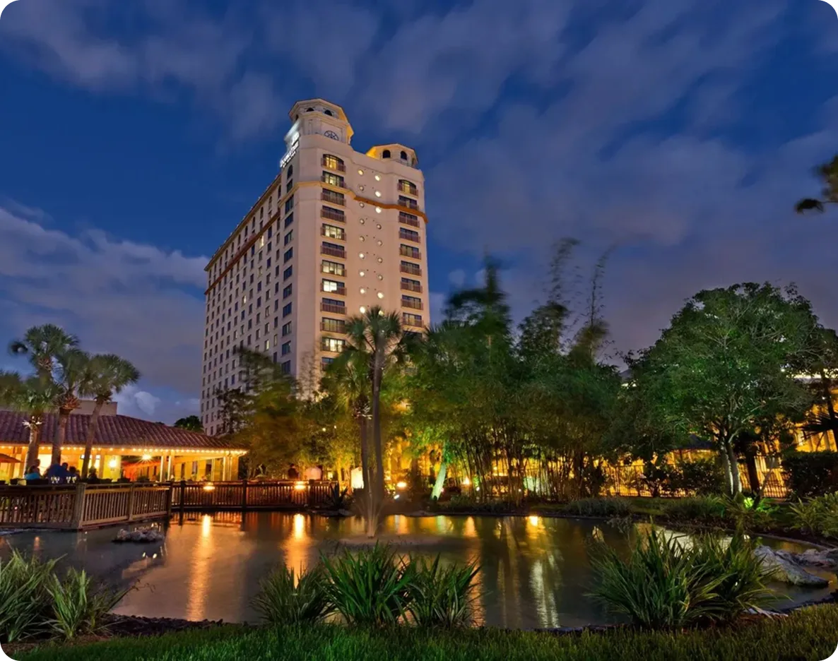 28-Acre Floridian Paradise Offers 1,042 Resort Style Rooms With 2 Magnificent Pools. Complimentary Miniature Golf, Outdoor Quiet Spaces, 3 Firepits, Multiple Dining Options, Two Bars And Family Games Such As: A Pool Table, Foosball, Table Tennis, Giant Checkers And More. This Lushly Landscaped Get-Away Is Perfect For Anyone From An Individual Retreat To A Couple’s Weekend To A Family Vacation.